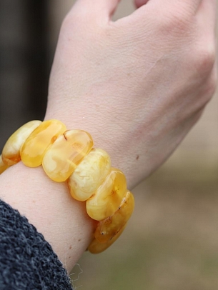 Prabangi poliruoto natūralaus Geltono Baltijos gintaro apyrankė
