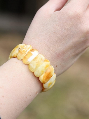 Prabangi poliruoto natūralaus Balto Baltijos gintaro apyrankė